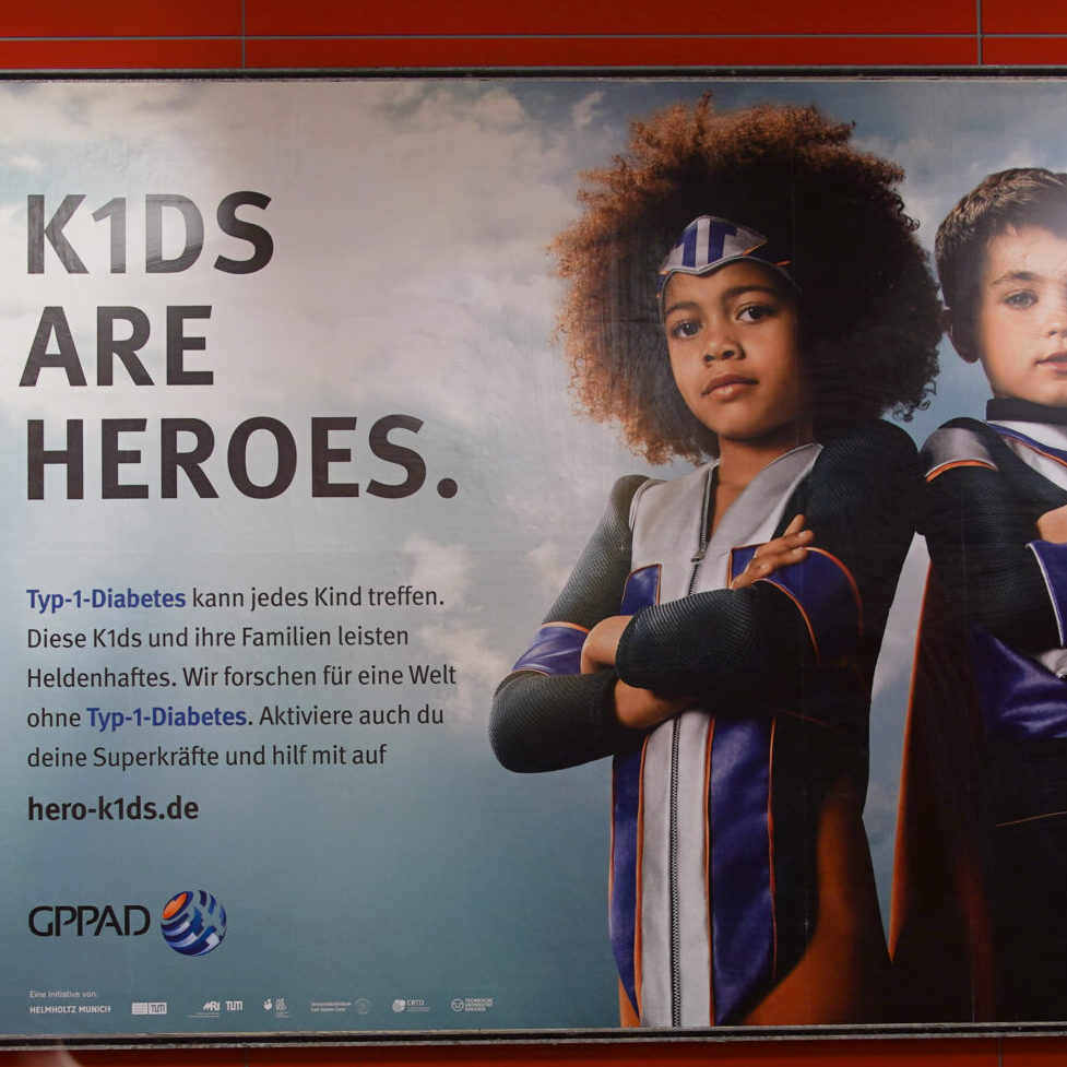 In 2023, GPPAD created the K1DS ARE HEROES campaign to raise awareness for type 1 diabetes and educated about symptoms and early detection options across all nations participating in GPPAD. K1DS ARE HEROES translates the everyday challenges of type 1 diabetes and the indispensability of families for our research into the positive image of superheroes. It pairs strong visuals and positive, emotional storytelling to spark interest in an under-recognized health topic. A multi-channel strategy with online and offline measures was used to reach as many people as possible. For example, over 2000 billboards in Munich, Dresden, and Hanover showed the campaign, media outlets reported about K1DS ARE HEROES, and social media engagement on Instagram was triggered. We thank almost 60 network partners helping us to spread our message. K1DS ARE HEROES was awarded with the Quadriga Digital Communications Award 2023.